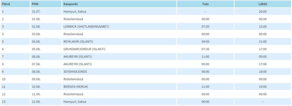 HALUATKO LISÄTIETOJA ISLANNIN RISTEILYSTÄ?