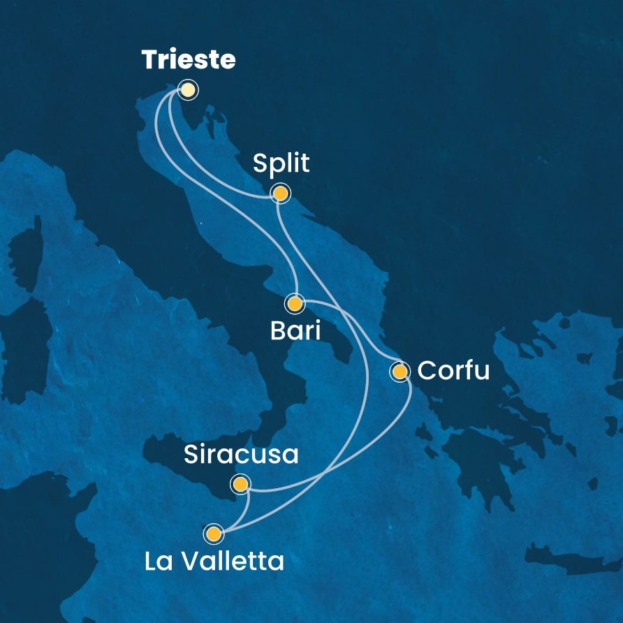 Persoonalliset, kauniit rannikkokaupungit tarjoavat kurkistuksen kroatialaiseen, kreikkalaiseen, maltalaiseen ja italialaiseen elämäntapaan. Kohteet ovat läntistä Välimerta pienempiä, ja niissä on helppo viivähtää. Vierailupäivät ovat reilun pituisia, joten saat mukavasti tuntumaa kaikkiin kaupunkeihin ja seutuihin.