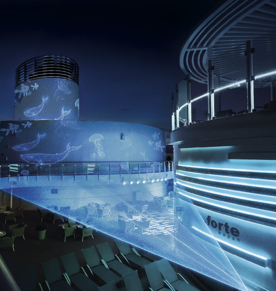 Costan merikohde on valaiden ja delfiinien suojelualue. Myöhään illalla 16. kannella nähdään vaikuttava valoshow valaiden ja delfiinien liikkeistä.